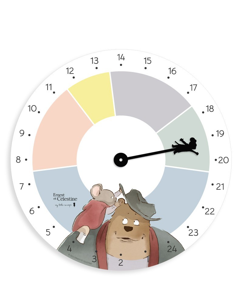 The 24-hour routine clock with Ernest and Célestine, silent, to help them understand the organization of their day.